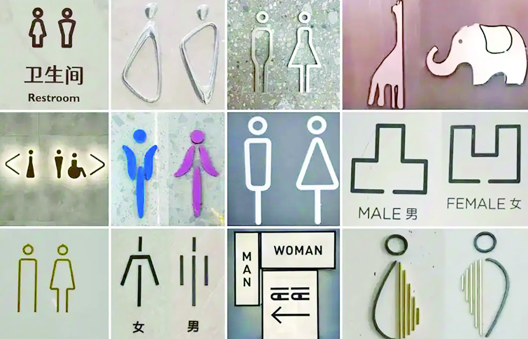 急着如厕,却发现公共卫生间门口只有“正三角”和“倒三角”,或是“大象”和“长颈鹿”之类的标识,让人摸不着头脑。各地网友发现的“奇葩”厕所标识,一度在社交平台上成为“热梗”,网友直呼:“我只想上个厕所,别考我了行不行!”