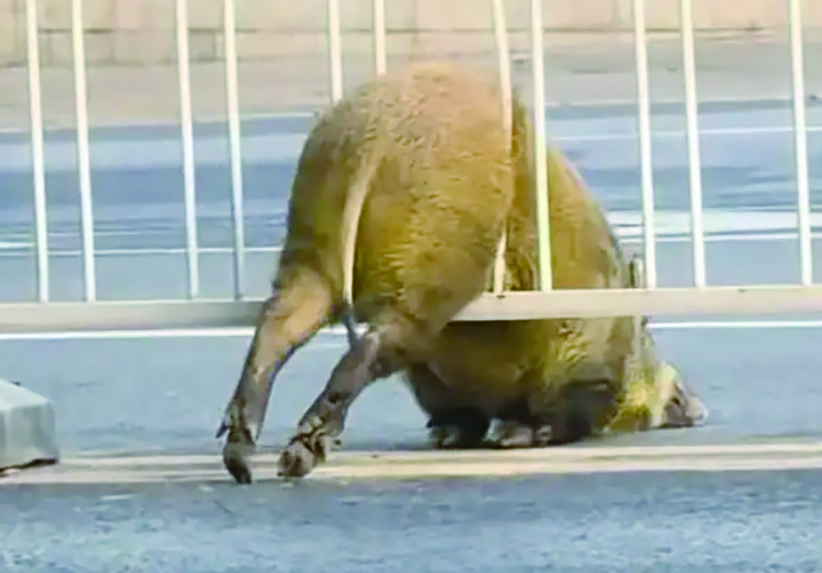 南京野猪太“野”了!11月21日早高峰,南京博物院附近路段,一头野猪横穿马路时不慎卡进护栏。因车流量大市民不敢贸然救助,热心市民已报警求助。