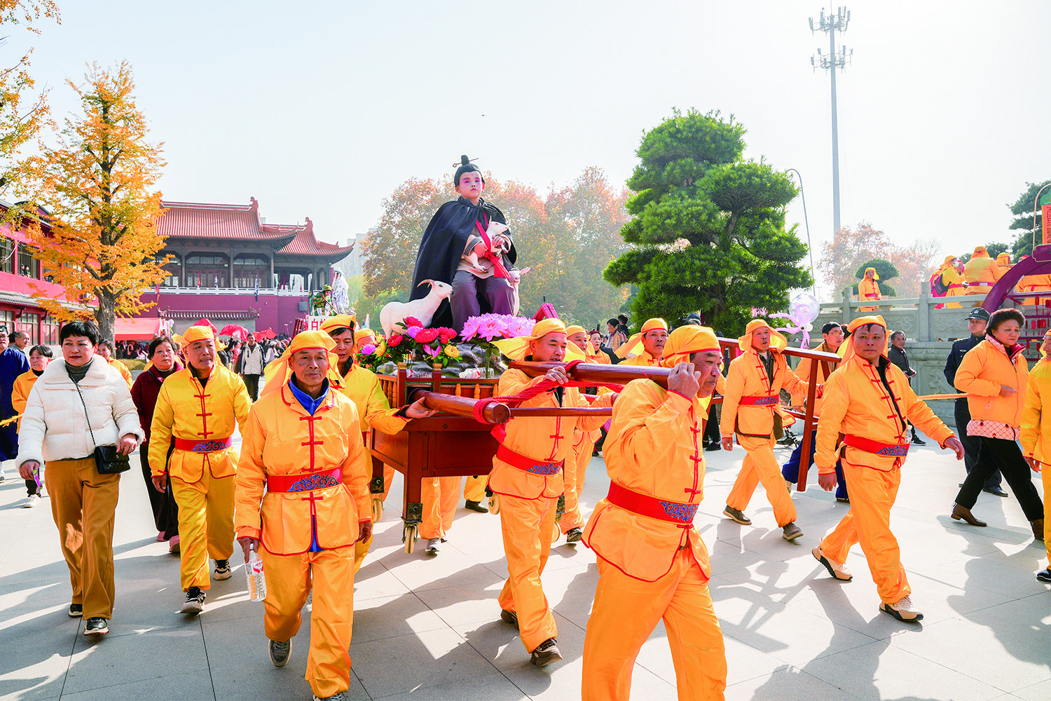 导报讯 锣鼓开道,旗幡飘扬。昨天上午10时,兰溪黄大仙宫广场人流如织,绵延百米的抬阁迎会队伍,从黄大仙故居沿着黄大仙公园、砚山路、清河路缓缓行来,吸引市民游客纷纷驻足。