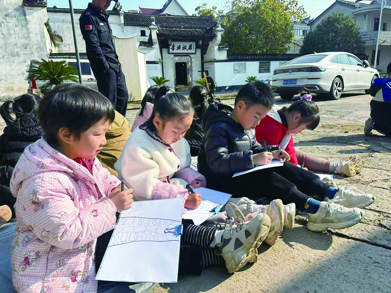 在老师的带领下,孩子们踏着青石板路,走进古色古香的夏李村,聆听李渔的童年趣事,观察白墙黑瓦的传统建筑,捡拾落叶、花瓣等,在行走中感受家乡深厚的文化底蕴与自然之美。