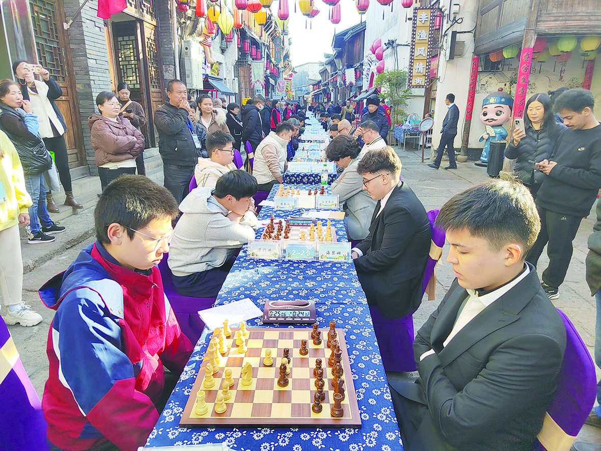 导报讯 纹枰对弈,智汇兰溪。11月29日,为期两天的2025年浙江省“李渔杯”国际象棋团体公开赛在兰溪市永昌街道李渔风情街开赛,来自国内外22支代表队共80余名棋手同场竞技。