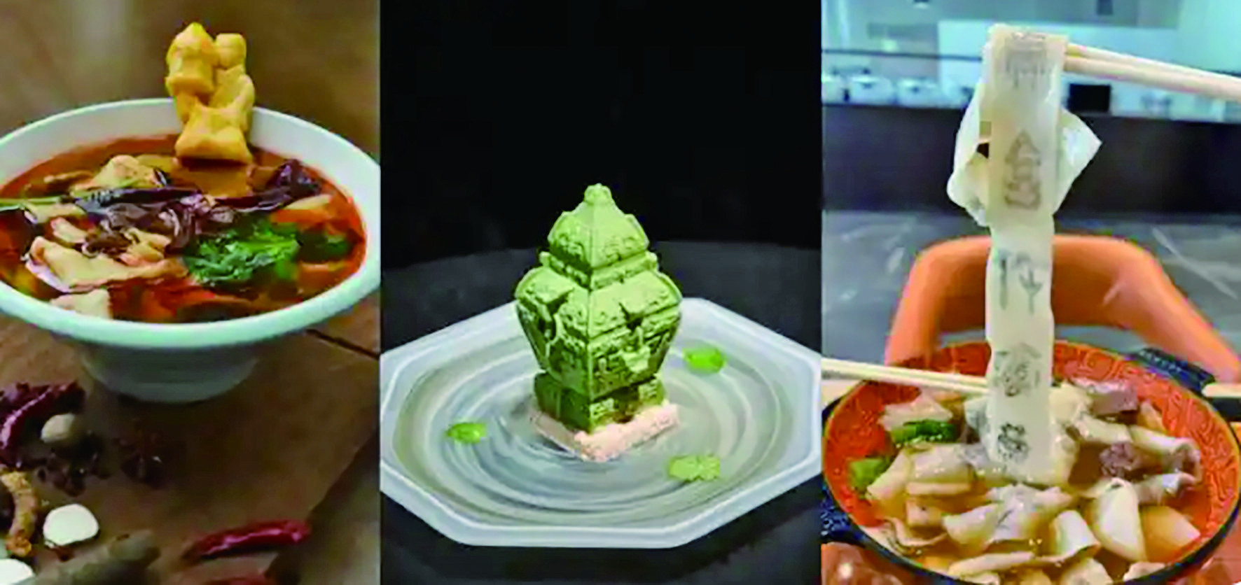 河北博物院的“长信宫灯”板面,将国宝造型化为餐食的一部分;湖南省博物馆的文物慕斯蛋糕,还原皿方罍等馆藏神韵,甜香中裹着历史韵味;殷墟博物馆的甲骨文面更是别出心裁,面条造型隐现甲骨文,每一口都藏着文字密码。 据新华网