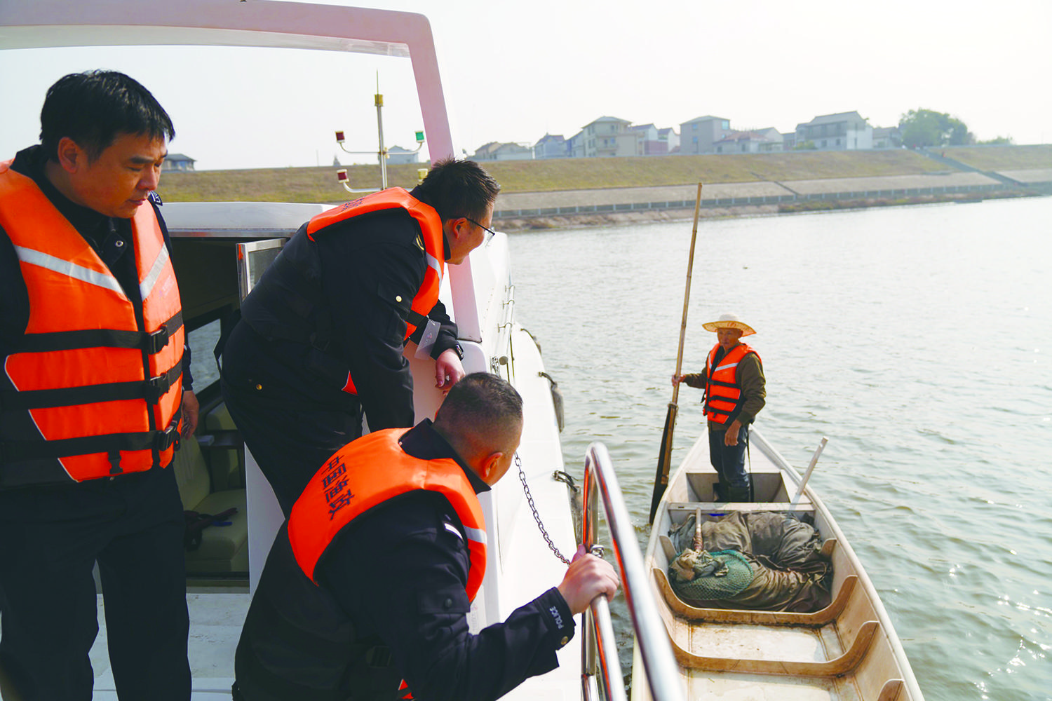 近日,兰溪市公安局环食药侦大队联合市农业农村局在兰江水域整治非法捕捞、水域污染等违法行为,筑牢水域生态安全防线。