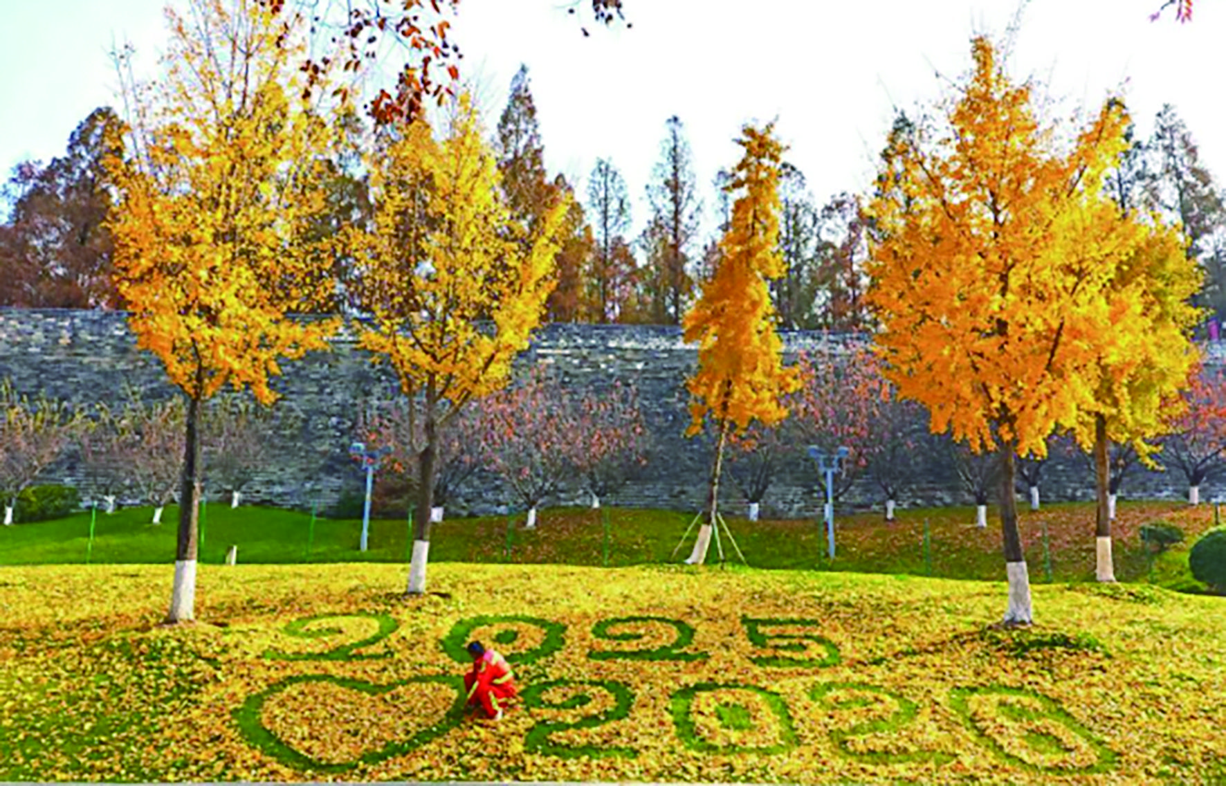 12月的南京,满城金黄落叶。玄武门城墙下,一位环卫工人把寻常落叶扫成了“南京”“2025”“2026”的字样,引来不少路人驻足围观并打卡拍照。