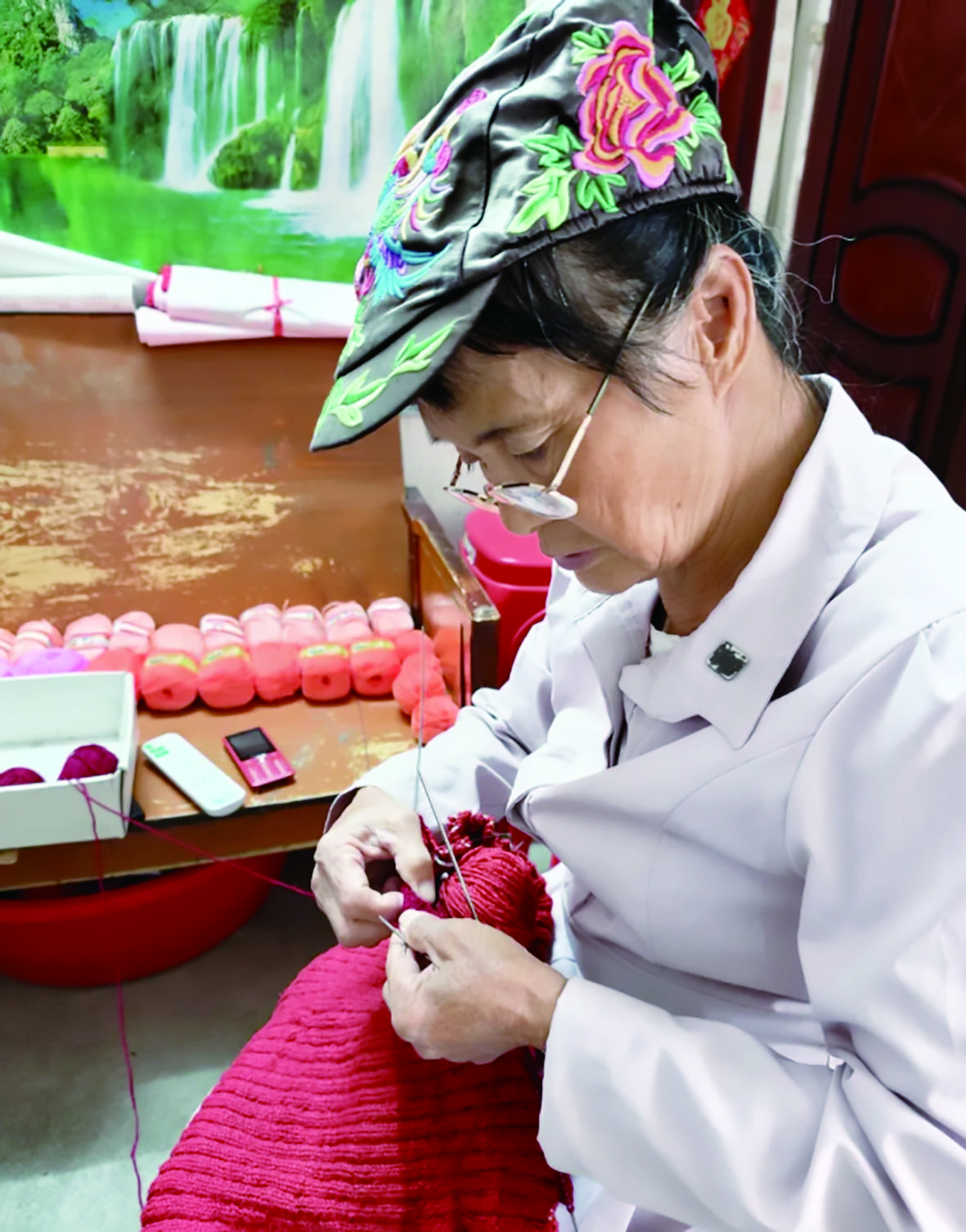 从此,织毛衣成了她生活的重心。每天清晨7点起床晨练后,她便几乎把所有时间都投入编织,直到晚上10点才休息。即便去年因脑梗住院,她在病榻上也坚持织上几针,“手里有毛线,心里才踏实。”熟能生巧,如今她除起针收针外,几乎不用看,全凭手感就能精准走针。仅今年,她就完成了12件毛衣,全部捐赠给八步区残联。