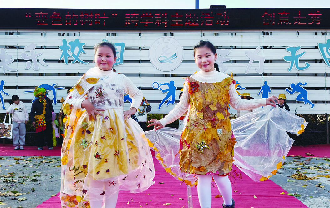 12月16日,在兰溪市香溪镇中心小学,五六年级学生身着用落叶与废旧衣物精心打造的创意服装,迈着自信的步伐走上T台,将自然之美与艺术创意完美融合。这场“科学+”的探索之旅,不仅解锁了树叶变色的秘密,更在孩子们心中播下了热爱自然、乐于探究的种子。