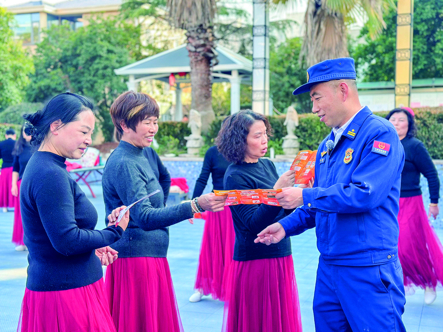 导报讯 昨天下午,兰溪市消防救援大队深入大型商业综合体、小区等人员密集场所,开展消防安全巡查与宣传活动,护航群众平安过节。