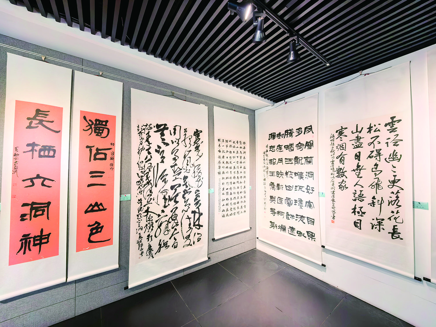 本次展览聚焦“大美灵洞”主题,作品涵盖对灵洞先贤诗文的笔墨传承,以及对今日灵洞山水胜景的写意抒怀。灵洞乡境内的六洞山(灵洞山)以白云、紫霞等六洞奇观闻名,灵洞源溪流蜿蜒其中,历来吸引文人墨客探幽访古。宋代苏迟、吕祖谦,明代方太古、赵志皋,南宋于石等均曾在此留下珍贵创作。比如,于石笔下“朝看烟云暮看霞”的洞景咏叹,方太古“青山乱峙秋千点”的感怀之句,皆在展中得以呈现,共同勾勒出灵洞深远的文化底蕴与自然之美。