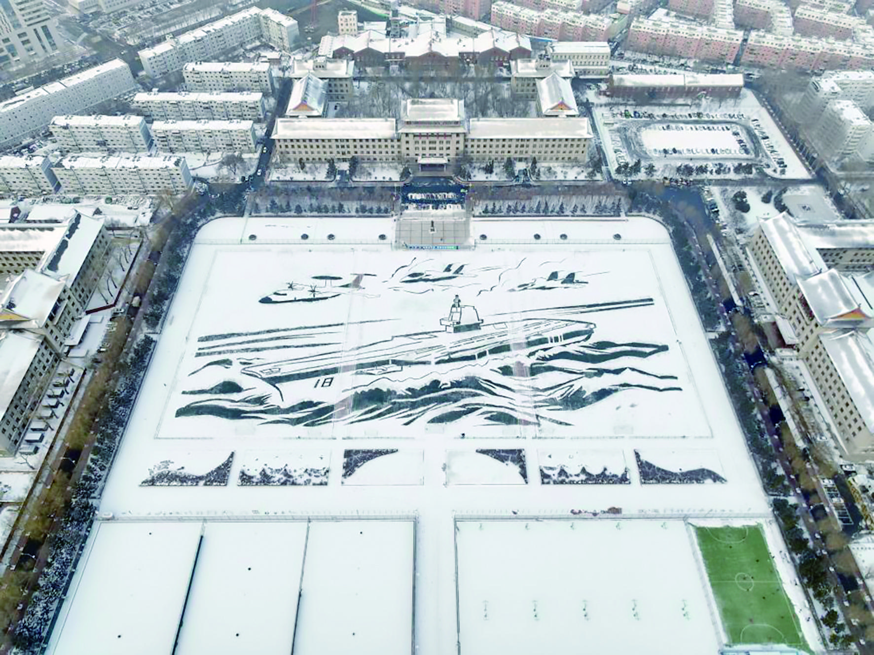这幅由1200余名师生冒着严寒共同完成的雪地“画卷”,运用先进的北斗定位技术,把学校“三海一核”(船舶工业、海军装备、海洋开发、核能应用)办学方略与黑龙江冰雪文化紧密融合,在北方的冰天雪地中致敬前沿大国重器,展现师生为建设教育强国、科技强国、人才强国再立新功的坚定决心。 据新华社