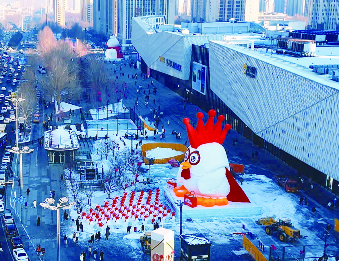 1月3日,多位网友发布视频称,哈尔滨哈西万达广场门口出现了“双王炸”,蜜雪冰城的“雪王”雪雕和正新鸡排的“鸡王”雪雕在商场门口同框亮相,两个巨型雪雕均高约18米,且各自伴随100个小雪雕。4日上午,记者致电哈尔滨哈西万达广场,接线人员表示,两个大雪雕近日刚刚完工,分别位于万达广场的两个门口。 据极目新闻