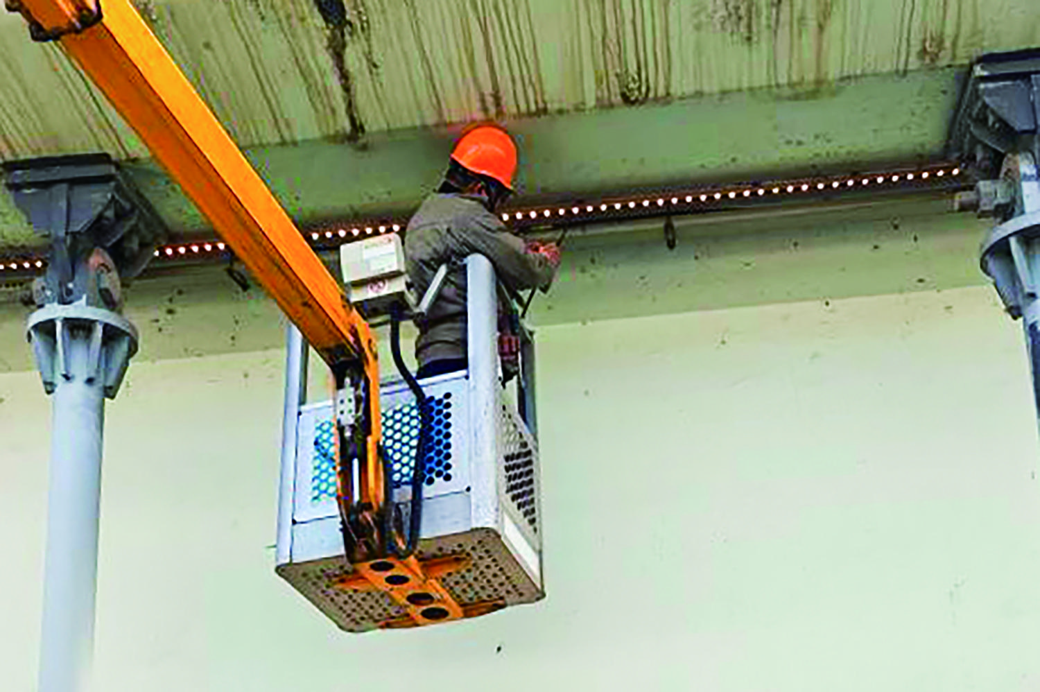 近日,兰溪市城投市政养护公司组织工作人员,对金角大桥非机动车道两侧的灯带进行专项检修,确保桥面照明均匀、可靠。