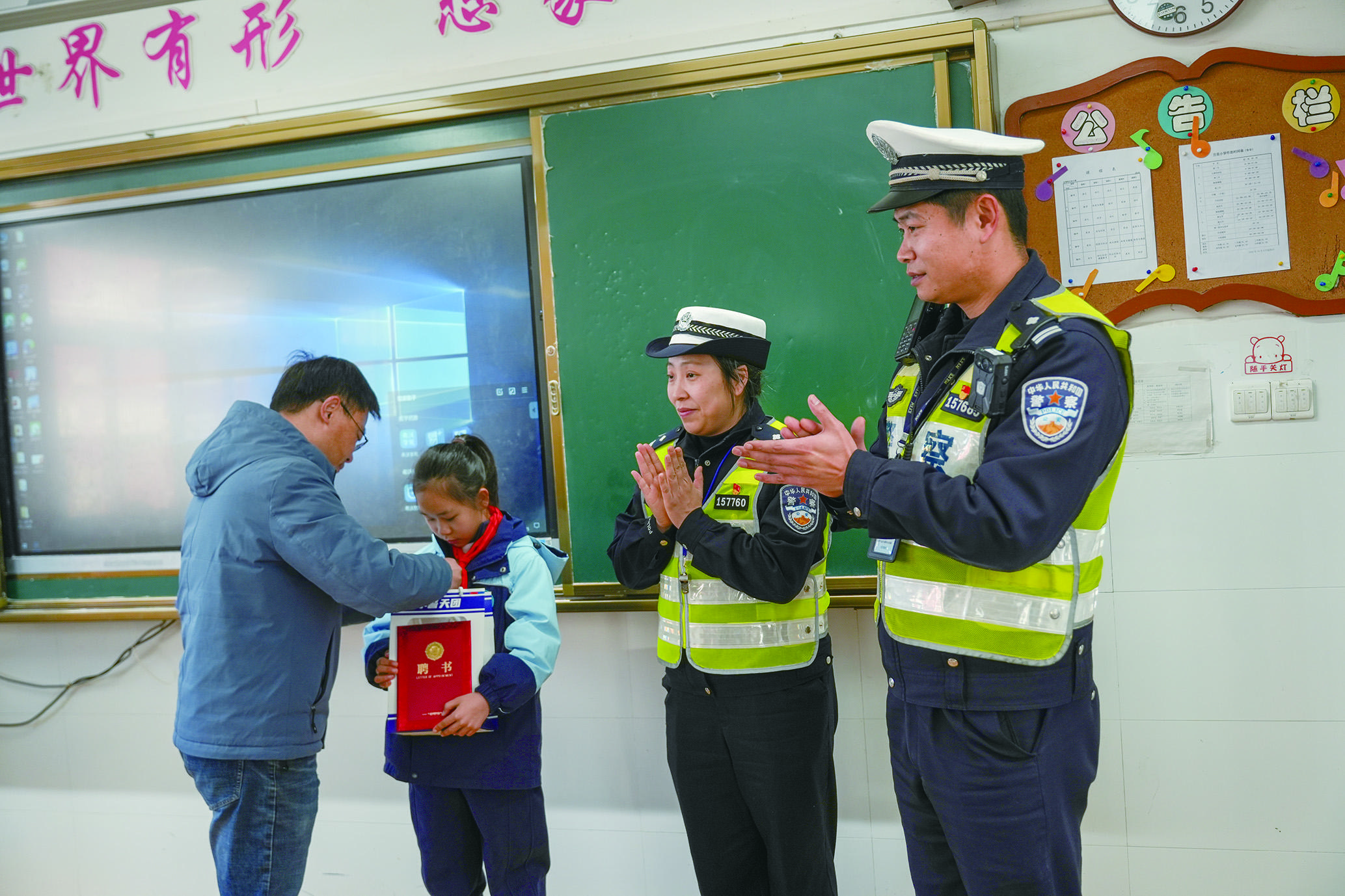 这份对孩子的暖心承诺,在次日上午如期而至。交警不仅将荣誉证书和礼品送到何沐言手中,还向全班师生完整复述了前一晚发生的正能量故事,并以此为切入点,为同学们开展了一堂交通安全教育课。