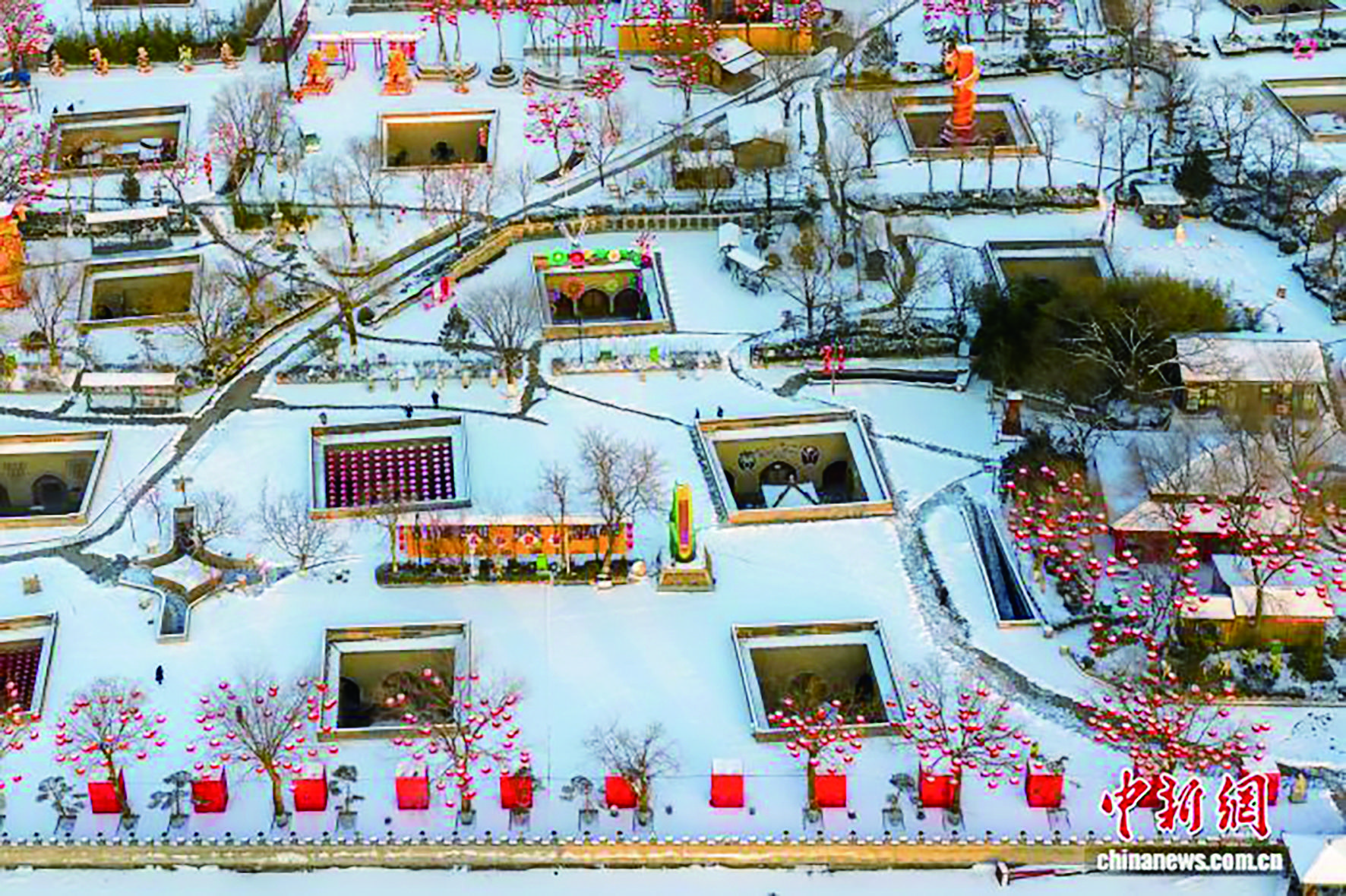 春节临近,河南三门峡陕州地坑院银装素裹,一盏盏红灯笼点缀古朴院落,与皑皑白雪相映成趣,浓浓年味扑面而来。