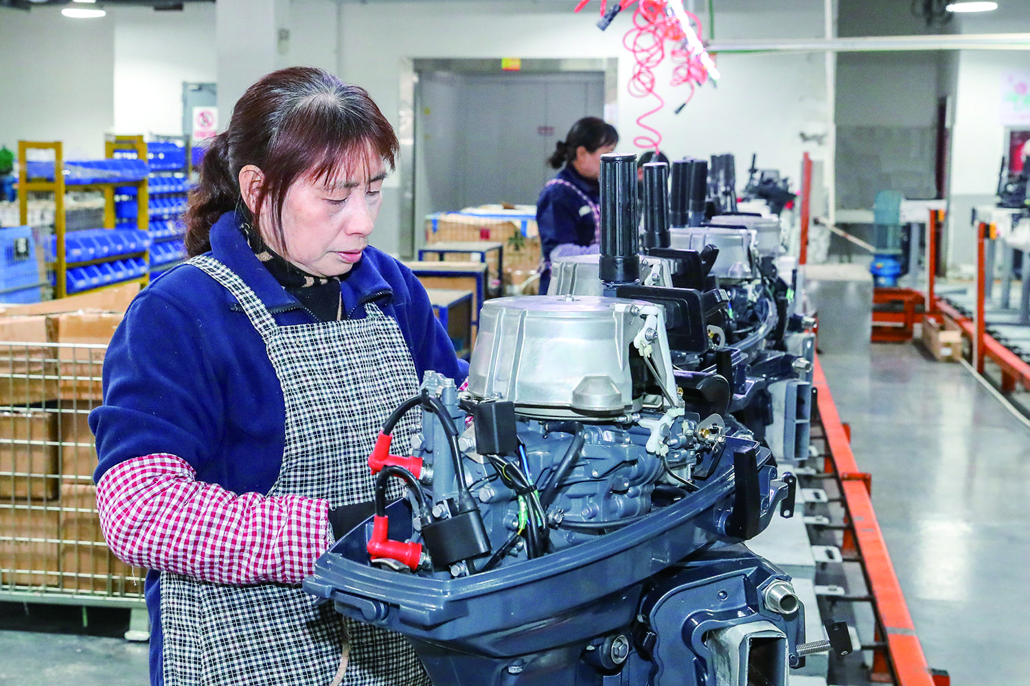 昨天,在金华市海威船艇设备制造有限公司,舷外机总装生产线全速运转,一批批舷外机接连下线,发往全球各地,全力冲刺“开门红”。