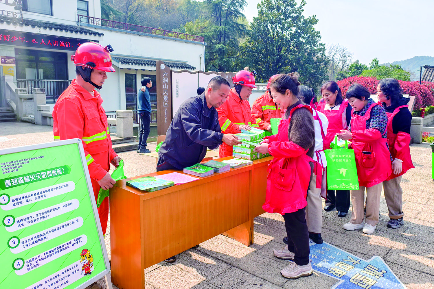 昨天上午,兰溪市森防指办、市自然资源和规划局、灵洞乡人民政府等部门在六洞山风景区开展森林防火主题宣传活动,为游客及周边居民普及森林防火知识。