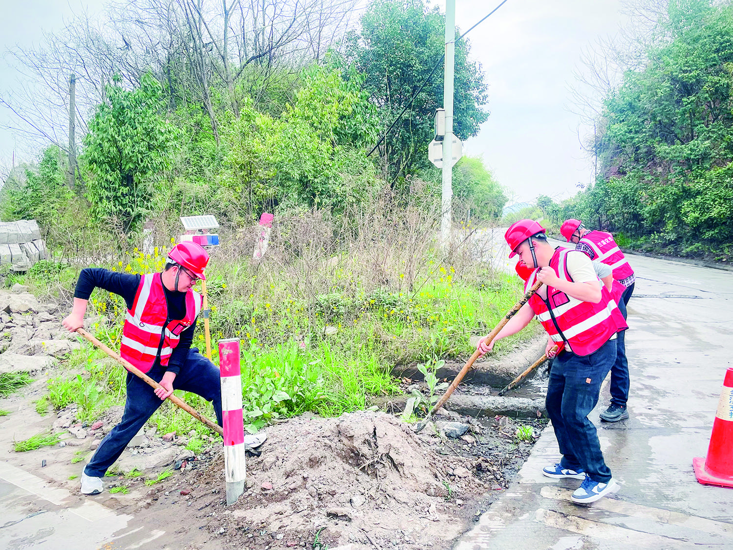 近日,兰溪市交投集团通达公司组织党员干部开展路域环境整治行动,清理县道杨龚线上的垃圾,安装损坏的警示柱,修复人行道绿化侧石,擦拭和保洁警示标志、广角镜等设施,为过往车辆和行人营造整洁、舒适、安全的路域环境。