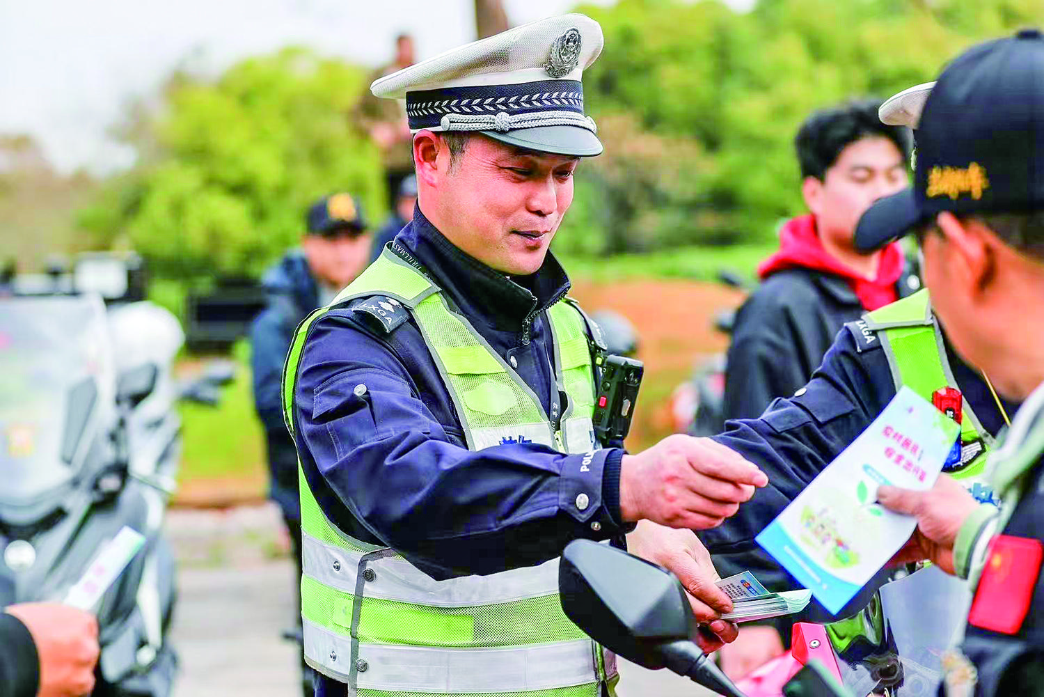 3月21日,在兰湖旅游度假区,兰溪交管大队上华中队民警围绕摩托车改装规范、佩戴头盔的重要性等内容开展宣讲活动,引导摩友文明出行、安全骑行。