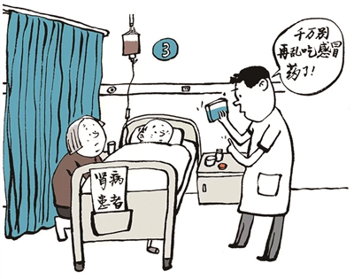 “其实周大伯的情况并不是个别现象。”杨瑞芳说,尽管医院反复向透析患者强调用药安全,明确指出凡是经肾脏排泄的药物,包括感冒药、抗生素及止痛药等,肾衰竭患者都必须咨询肾内科专科医生,谨慎调整剂量或避免使用,但每年仍有不少透析患者因盲目用药导致中毒性脑病。