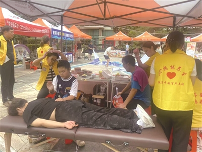 活动现场,“文化传承·亲子互动”板块的“童画长廊”成为一大亮点。孩子们在画纸上尽情挥洒创意,用稚嫩的笔触描绘出“我心中的党”。“红色领航·暖心服务”区域同样人气爆棚。理发、口腔义诊、肩颈按摩、血压测量,还有贴膜、宽带升级换光纤等便民服务,切实解决了居民生活中的实际需求,将温暖送到了居民家门口。