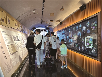 据悉,鹳山防空洞于2022年9月开始进场改造,2022年12月完工。改造后的“别有洞天”体验馆入口位于鹳山公园入口左侧,走入防空洞,入眼所见是富阳老城照片、璀璨灯光秀……借助沉浸体验、数字互动、光影艺术等最新科技手段,让展陈空间成为互动空间,以大众喜闻乐见的方式进行新的展示与传播。