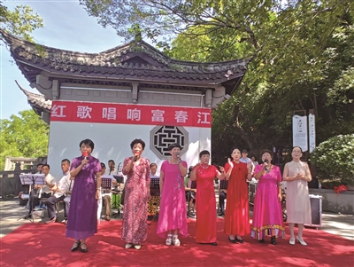 本报讯(通讯员 王大原)昨日,为庆祝中国共产党成立104周年,区音乐家协会美新艺术团的20多名成员在鹳山春江第一楼,通过红歌唱响时代强音,以山水为幕礼赞建党伟业。《美丽的富春江》《党啊!亲爱的妈妈》《我的祖国》《没有共产党就没有新中国》等歌曲,赢得现场市民及游客阵阵掌声。