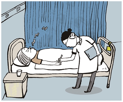 针对睡眠困扰,有护士提出了“划线疗法”:夜晚巡房时,要是发现她睡着了,就用黑笔在她手背画一条线作为记号。和陈大姐商量后,她同意了这个方案。