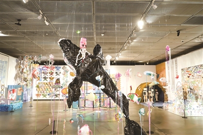 在本次展览中,富阳共有15所学校的16件作品入选,500余名学生参与创作。在展览现场,来自杭州银湖实验小学的四年级学生张知予向参观者介绍自己的作品,她说这件作品是学生和老师作品的组合,学生作品部分则是由全校同学共同参与完成的。每一幅作品的诞生都像是一次艺术游戏,张知予在画纸上画了长翅膀的房子,把画纸传给同桌,同桌添上薯片做的楼梯,又交给下一个小伙伴。“我们把画布作为漂流瓶,在转完一圈后,漂流瓶会带着大家的奇思妙想回到我手中,大家的创意共同完成一件作品。”她说,创作这幅画是想表达——虽然每个人都有自己的想法,但绘画可以把大家的思想聚集在一起。