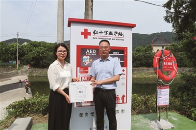 7月16日下午,富阳区红十字会向大源镇捐赠了一台自动体外除颤器(AED)及配套急救包。这台被誉为“救命神器”的AED设备,就配置在大源溪畔蛇头堰区域,为防溺水工作再添一道至关重要的“安全锁”。急救包的补充,进一步丰富了现场应急救援物资储备。