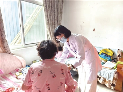 “原本担心出院后没人管,现在医生直接到家里服务,特别踏实安心。”刘女士的家属看着上门为刘女士换药的家庭医生,脸上满是感激之情。