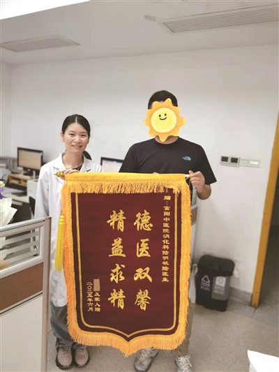 本报讯(记者 周晓露 实习生 楼金艺 通讯员 管玲琳 周俊)“陆医生,我的甘油三酯降下来了,感谢感谢!”近日,富阳人周先生拿到血脂结果的那一刻,悬着的心终于放下来了。为此,他还带着定制的锦旗、蛋糕和鲜花来到了区中医院消化内科,向陆明敏医师表达了自己的感激之情。
