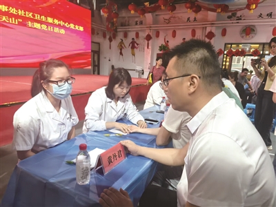 问诊台前始终排着长队,居民们的需求朴素而迫切:不少人向黄丹君咨询颈椎病、腰痛等顽疾,盼着借中医调理舒缓疼痛;也有人细致询问糖尿病、高血压的日常养护与治疗方案。她一一回应,耐心为每位居民测量血压、血糖,结合个体情况给出量身定制的健康建议,指尖的温度与话语的暖意一同传递。