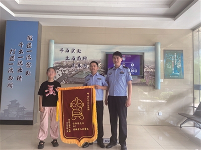 近日,李女士和孩子带着锦旗来到龙门派出所,锦旗上的“奥特曼”摆出标志性的动作,下面写着“你相信光吗?不!我相信人民警察!被骗的小学生敬赠”。孩子说:“警察叔叔守护着我们的平安,让大家感到非常安心。”