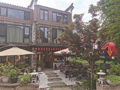 今年,“村咖”成为了乡村文旅的“流量密码”,以及链接城乡的消费新场景。在龙鳞坝旁一家布置优雅的乡村咖啡馆内,游客们一边纳凉赏景,一边品尝着清爽的饮品,十分惬意。几年前,店主李路达通过老房改造,呼应周遭的山水景观,将此改造成了一家名为“青山影”的咖啡馆,通过“咖啡+景区”“咖啡+民宿”的元素组合,吸引了不少人气。李路达说:“来者大多数是江浙沪地区的游客,暑期玩水季客流会更多些。”
