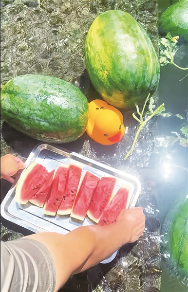 来方里村,可以随手从地里摘一个鲜甜爽口的高山西瓜,放在冰凉的溪水里浸泡半个小时后,就是大自然馈赠的天然“冰镇西瓜”。一口下去,汁多、味甜、鲜爽、松口,足够惬意。
