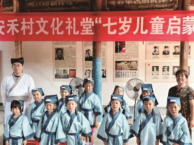 “正衣冠,明事理;行师礼,尊师道;点朱砂,启智慧……”8月3日,常安镇安禾村家风馆里,11位即将踏入小学的学童在庄重典雅的氛围中,共行人生第一大礼——“开蒙礼”,开启他们求知生涯的第一课。