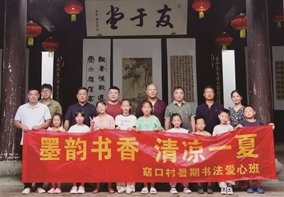 窈口村历来浸润在墨香之中,村民对书法的热爱代代相传,众多书法爱好者常年坚持练习、创作,让村里的书法氛围日益浓厚。此次开办的暑期爱心书法班首期设10节课,特邀曹国海、潘海峰、徐建林三位村贤公益授课,课程面向全村儿童。