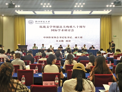 今年是中国人民抗日战争暨世界反法西斯战争胜利80周年,也是郁达夫殉难80周年。这两个时间节点既是时间的标记,更是精神的坐标。8月15日,“抗战文学暨郁达夫殉难八十周年”国际学术研讨会在杭州召开,中国作家协会书记处书记、副主席吴义勤和副主席阎晶明,省社科联副主席陈先春,杭州师范大学党委副书记应飚,区委常委、宣传部部长张鹏参加。
