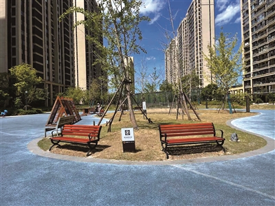 围绕公共配套设施建设资金难题,通过多次四方联席会议协商,创新推出“经费分摊”机制——按各村在小区的安置房数量比例分摊建设费用,彻底打通资金梗阻。如今,户外幼儿游乐园和健身场所已建成投用,34组休息座椅遍布小区,架空层添置了休闲娱乐设施,老年活动中心也在加紧建设,预计8月底就能投入使用。曾经的“吐槽点”变成了 “网红打卡点”,每天都能看到孩子们嬉戏打闹、老人们健身休憩的热闹场景,不少安置小区专程前来考察学习。