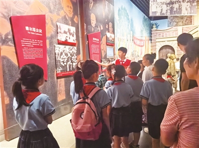 展厅内,另一道风景线同样动人。15名来自银湖中学的“小小讲解员”穿梭其间,用稚嫩却流利的声音讲述着抗战历史。这些经过选拔和培训的小志愿者,不仅补上了暑期接待高峰的服务短板,更以同龄人易接受的方式传播着红色故事,常常在讲解结束后被参观者围住答疑。“能深入学习这段历史,还能讲给更多人听,让大家明白吾辈当自强的道理,我觉得特别有意义。”“小小讲解员”陆凌静说。