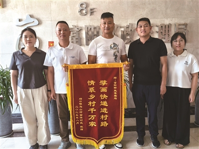 近日,场口镇马山村村委会副主任闻垚和几位村民专程来到富阳邮政管理局,送上了一面写有“擘画快递进村路,情系乡村千万家”字样的锦旗,感谢邮政管理部门的“快递进村”工作举措,大大方便了村民们的日常生活。