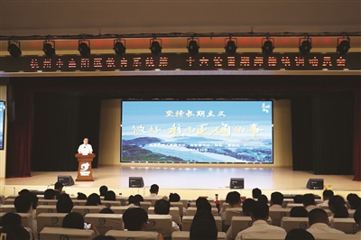 每年举行师德教育培训是富阳教育的一大传统,今年是第26年。动员会上,区委教育工委副书记、区教育局党委书记、局长费国民作暑期师德培训动员报告暨新教师第一课。他以“坚持长期主义做好‘难而正确’的事”为主题,围绕 “艰难、选择、前行、收获” 四个关键词展开师德培训报告。