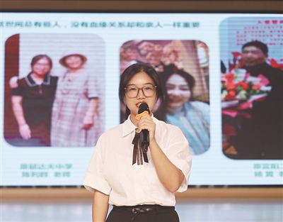 “在学习里不断提升自己的专业能力,以更好的状态,助力孩子们成长。”银湖中学盛华玲老师分享了自己和学生共同成长的故事。作为一名语文教师,她“看到”每个孩子的独特之处,通过有趣的活动鼓励他们写作,和孩子们一起收获文学创作的丰硕成果;她“懂得”每个学生都很重要,耐心倾听学生的烦恼,曾用一杯奶茶帮助有心理问题的学生重拾希望、考上大学;她喜欢“折腾”,积极参加研修、搞科研,在学习里不断提升自己的专业能力,以更好的状态助力学生成长。