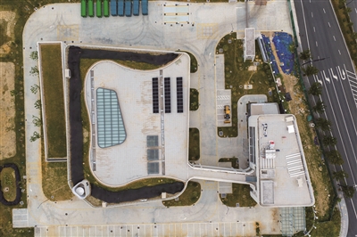 走近项目现场,两幢简洁现代的白色建筑格外醒目。其中一幢为4层高的管理及生活用房,造型规整、功能明晰;另一幢体量更大的则是生活垃圾转运车间,采用地上二层与地下一层的结构设计,外立面整洁大方。转运车间内部规划科学、分区明确,设有卸料大厅、转运大厅、机修间、可回收物暂存间、除臭设备间、中控室、变配电间以及转运车辆停车区域等。 (下转2版)