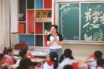 在照片中,富春八小的李群丽老师正在跟我们分享开学第一天的事项。她从一年级就开始陪伴我们,见证了我们的成长与进步。她不仅教授我们数学知识,更是我们的知心朋友。她很爱笑,特别会用鼓励的话语关心我们,也很喜欢下课时跟我们聊聊天,有些心里话我们都愿意跟李老师讲。
