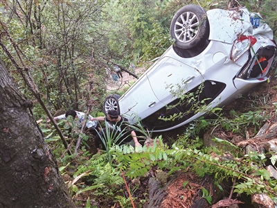 本报讯(记者 金易梵 通讯员 丁颖楠)近日,常安派出所接到群众报警,称车辆在常安镇大源坪附近失控冲出路面,仰翻于路基下方的陡坡上,车内3人被困,情况危急。