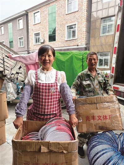 这些年,蔡小明的球拍事业变化很大,起初是附近姐妹上门取球拍,后来加入球拍穿线的姐妹多了,她就换成脚踩三轮车送货,再后来,业务范围扩大,夫妻俩用上了电动三轮车。“我们家里有三辆电动三轮,使用时间长了,电容易跑干,电动三轮得备着。”蔡小明主要负责在环山范围内放球拍,裘小明则要负责送到周边乡镇(街道),从白天送到黑夜,遇到没有电梯的房屋,小明夫妻坚持“送货上门”,爬五六层楼,把一箱箱球拍送到姐妹手中。