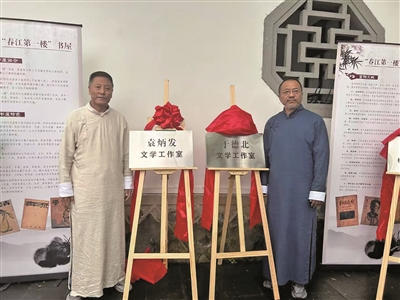 被富阳的山水人文深深吸引,袁炳发于2024年6月1日正式将个人文学工作室设立于富阳鹳山脚下的“春江第一楼书屋”。一年多来,他深入富阳创作,陆续在《散文百家》《特区文学》《青岛文学》等刊物发表多篇富含“富阳元素”的散文与小说。