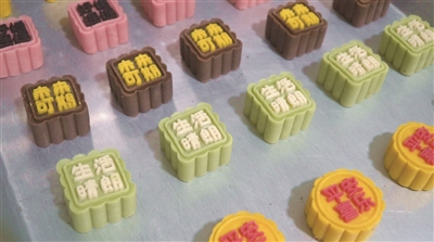 今年,“官塘院”食品厂在工艺创新上持续发力,采用桃山皮制作的国潮月饼,以细腻独特的口感圈粉无数。令人惊叹的是,工厂仅凭借四五十款模具,便能变幻出上百种造型各异的月饼,每一款都构思精巧、独具特色。生产主管罗永娟介绍,自去年生产技术成熟后,今年月饼产量直接翻倍,“国潮元素的融入是关键,我们希望让小朋友也能喜欢上传统美食”。 她指着一款印有“好事发生”字样的月饼解释,这些元素都蕴含美好寓意,“‘鲤鱼跃龙门’寄寓学业事业进步,‘平安喜乐’传递幸福期许,让月饼成为传统文化的‘移动载体’”。马阿丽补充道:“我们追求让每一口月饼都饱含文化味,食客吃的是美味,品的是传承,就像把文化种子播撒进大家心里。”