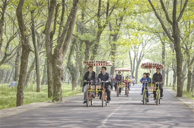 除时鲜蔬菜外,岛上水产十分丰富,青、草、鲢、鳙和其他淡水鱼应有尽有,垂钓是岛上的热门活动之一。相较于餐食,自然清新的环岛风光才是五丰岛吸引年轻人的“流量密码”。自行车骑行爱好者小吴说,岛上的道路设施不错,结伴骑行相当舒服。沿路不仅有田园风光,还有大片芦苇丛、红杉树林,美不胜收。