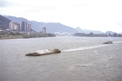 午后,数十艘运载着砂石的货船,排成长队,往返于富春江上,形成一道美丽的风景线。